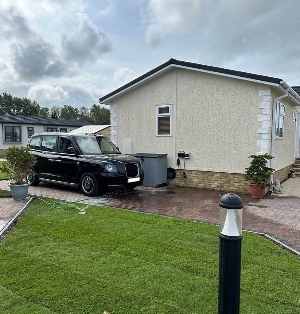 Les, who still drives his taxi in Central London five days a week, chose a fully furnished 40×20 Omar Regency park home with a classic exterior and a sleek, modern kitchen with all appliances, moving in this May. With support from EKOS Homes, the couple tailored the layout—opting for a south-facing plot, adding a utility room, and fitting patio doors that open onto decking. “David and the EKOS team—Joe and Lisa included—were brilliant and helped us shape the home to our needs,” Les says.